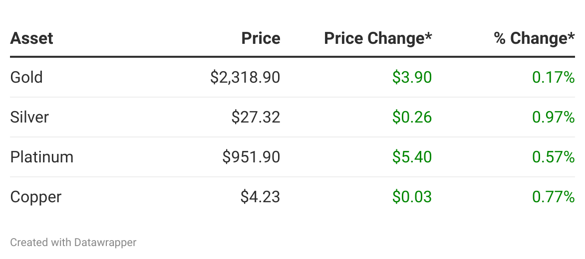Gold prices hit a new record on Thursday, breaking above $2,300 per ounce. Read on »