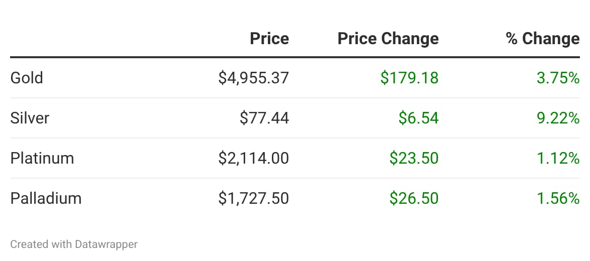 Spot silver was up more than 9% to above $77 an ounce by mid-afternoon in New York on Friday, having earlier tumbled toward $64. That followed a 20% decline in the previous session that wiped out all of the metal’s gains from a spectacular rally last month. Gold also advanced after an earlier retreat. Read on »