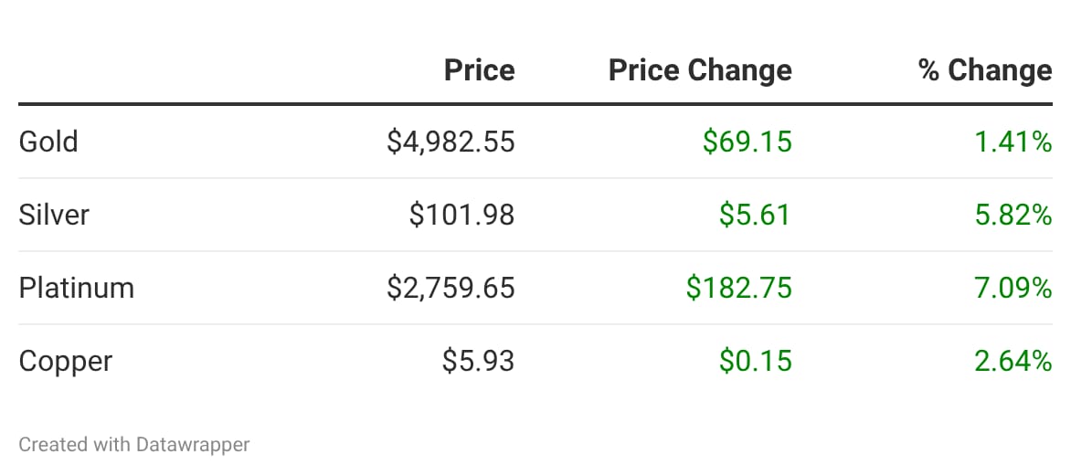 Silver hits record high above $100/oz as gold closes in on $5,000 milestone